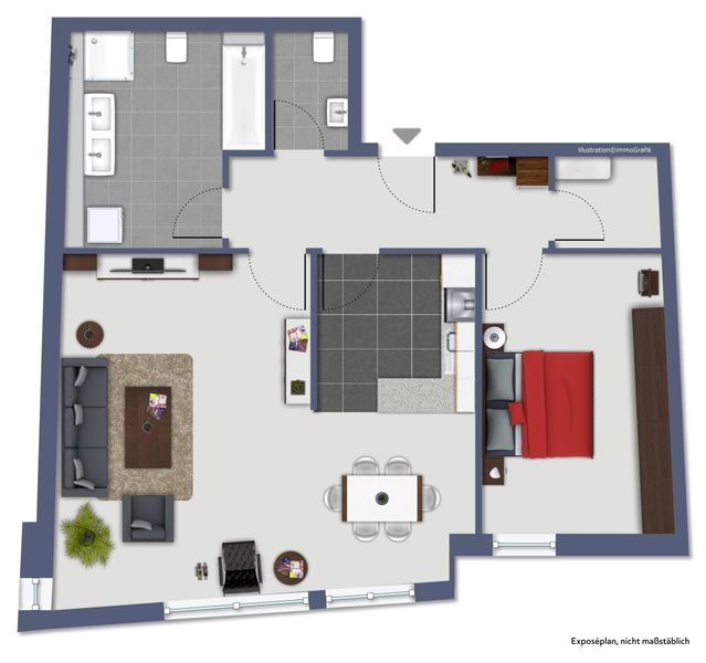 Das moderne Badezimmer ist sowohl mit einer Badewanne als auch mit einer Dusche ausgestattet und erfüllt damit unterschiedliche Komfortbedürfnisse. Ergänzt wird das Angebot durch ein separates Gäste-WC, das den Alltag insbesondere bei Besuch zusätzlich erleichtert. Ein praktischer Abstellraum innerhalb der Wohnung sorgt für zusätzlichen Stauraum.