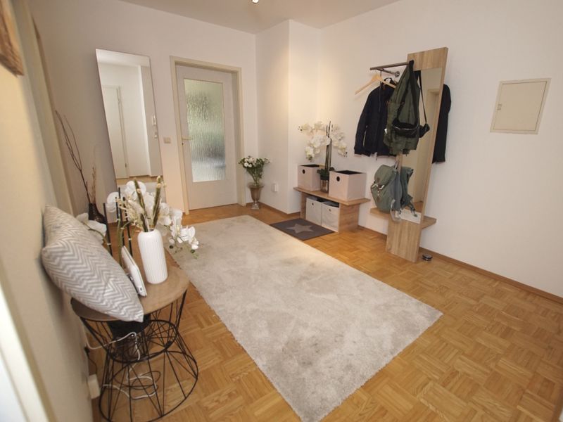 Die Wohnung umfasst vier geschmackvoll gestaltete Zimmer: ein behagliches Schlafzimmer, ein ruhiges Arbeitszimmer, ein praktisches Ankleidezimmer sowie einen einladenden Wohn-/Essbereich mit elegantem Parkettboden. Das Tageslichtbad beeindruckt mit modernen Details und einer bodengleichen Dusche, die ein entspanntes Wohlfühlambiente schafft.