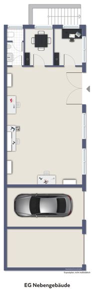 Zusätzlich befindet sich auf dem Grundstück eine ehemalige Werkstatt, die zuletzt als Praxis für Physiotherapie genutzt wurde und somit zusätzliche Miet- oder Nutzungsmöglichkeiten eröffnet.