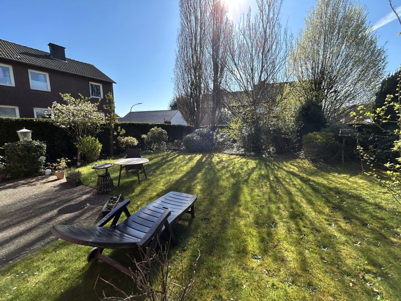 – Gartenbereich mit Terrasse und Rasenfläche