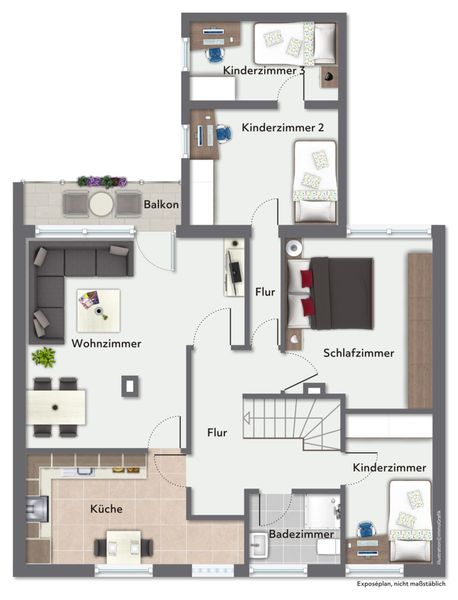 Mit insgesamt 4 Zimmern, darunter drei Schlafzimmern werden flexible Nutzungsmöglichkeiten geschaffen – ob als Kinderzimmer, Homeoffice oder Gästezimmer. Das helle Wohnzimmer bildet den Mittelpunkt der Wohnung und bietet Zugang zu einem Balkon, welcher zusätzlichen Freiraum im Alltag ermöglicht. Ein Badezimmer rundet das Raumkonzept funktional ab.