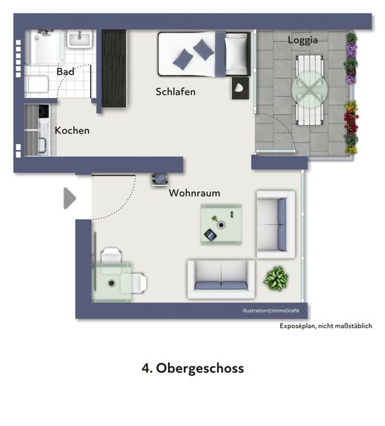Das Apartment ist sehr praktisch geschnitten und grenzt durch eine kurze Wand den Wohn- und Essbereich optisch gut voneinander ab. Ein besonderes Highlight stellt die Loggia dar, auf welcher Sie einen traumhaften Blick über die Stadt erlangen!