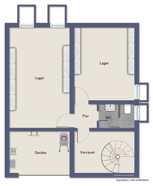 Weitere Lagerfläche befindet sich im „Keller unter dem Ladenlokal“ (ca. 65 m²)