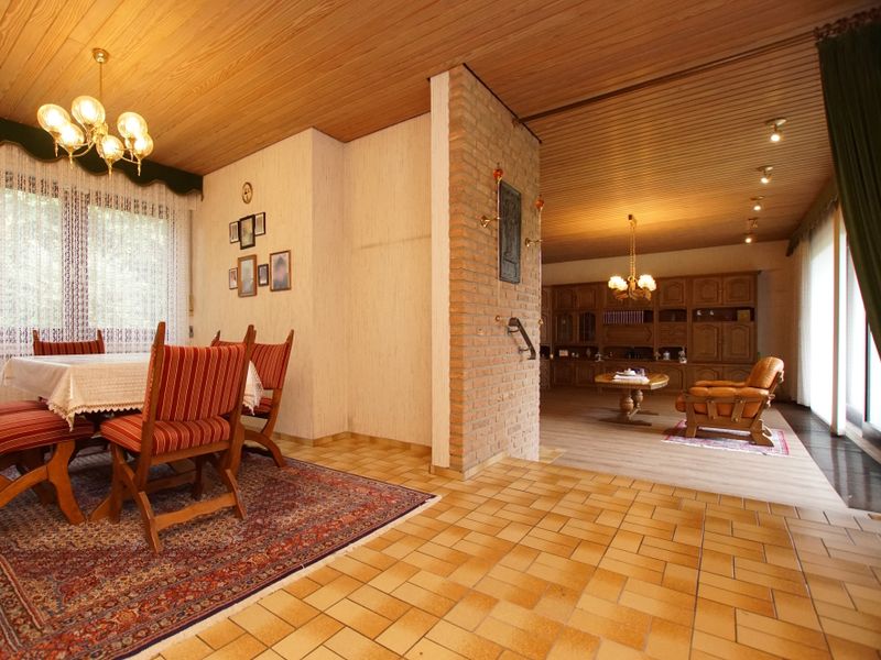 Erbaut im Jahr 1977, beeindruckt dieses massiv gebaute Haus durch sein zeitloses Design und seine hochwertige Bauweise. Auf einer großzügigen Wohnfläche von ca. 148 m² verteilen sich insgesamt fünf geschmackvoll gestaltete Zimmer, davon drei gemütliche Schlafzimmer, die Ihnen und Ihrer Familie den perfekten Rückzugsort bieten. Zusätzlich wurde im Obergeschoss ein weiteres Zimmer und ein Bad aus der Ausbaureserve gewonnen, sodass Sie auf momentan ca. 175 m² Wohnfläche kommen. Das Herzstück des Hauses bildet das einladende Wohnzimmer mit Kamin, das nicht nur an kalten Tagen für eine behagliche Atmosphäre sorgt.