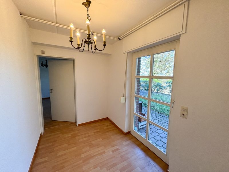 Das Haus wurde 1980 errichtet und präsentiert sich als solides Zuhause mit klarer Raumstruktur und angenehmem Wohnfluss. Auf ca. 113 m² Wohnfläche verteilen sich drei Zimmer, die sowohl Paaren mit Platzbedarf als auch einer kleinen Familie ein stimmiges Raumangebot ermöglichen. Der Zugang erfolgt über den Eingangsbereich mit Diele, von der aus sich die Wege sinnvoll verzweigen. Ein Gäste WC ergänzt den Empfangsbereich praktisch.