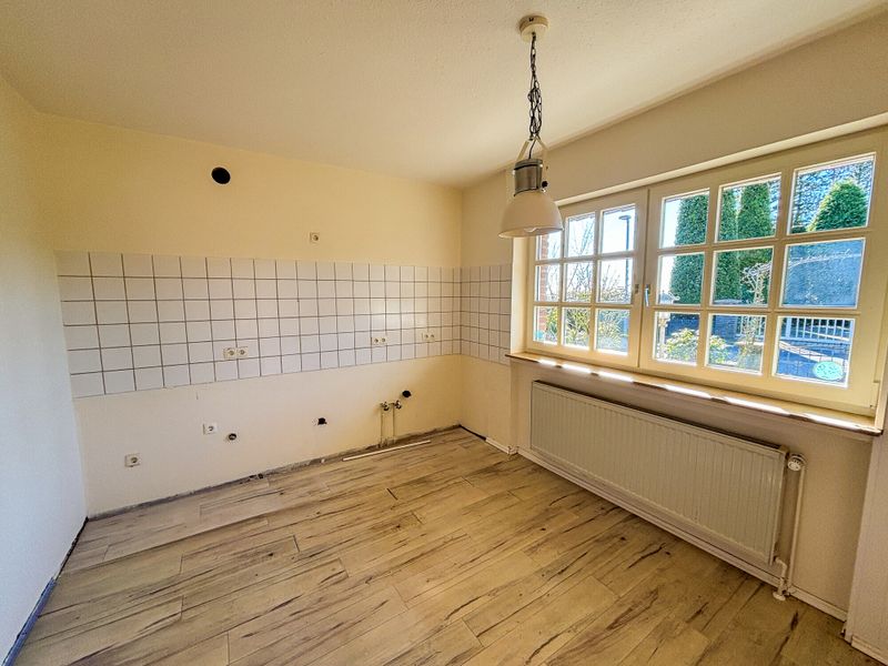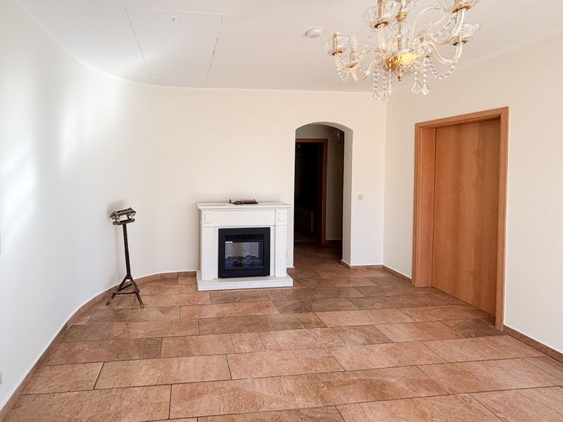 Herzstück des Erdgeschosses ist der großzügige Wohn-/Essbereich, der sich offen und lichtfreundlich zeigt und durch große Fensterflächen eine freundliche Atmosphäre erhält. Ein Kamin setzt hier einen ruhigen Akzent und schafft an kühleren Tagen einen Ort zum Wohlfühlen. Von diesem Bereich aus öffnet sich der Schritt nach draußen, der Balkon erweitert den Wohnraum in der warmen Jahreszeit und bietet Platz für Frühstück, Feierabendgetränk oder einfach eine kurze Pause. Eine Einbauküche ist derzeit nicht vorhanden und sollte durch den Mieter selbst eingebracht werden.