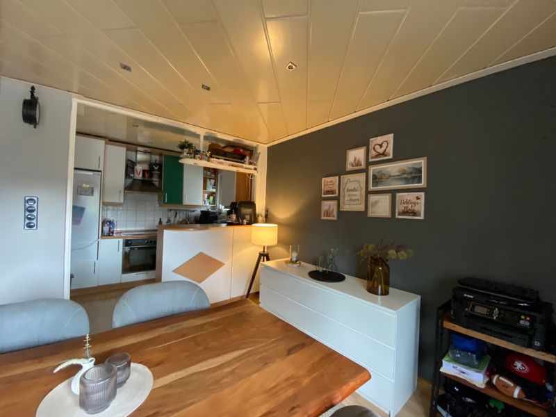 Die Wohnung ist bis auf das Bad komplett mit Laminatboden ausgestattet und vermittelt dadurch ein modernes, pflegeleichtes Ambiente. Die Fenster stammen überwiegend aus 1979, das Dachflächenfenster wurde 2016 erneuert.