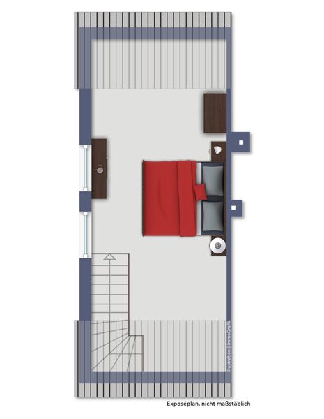 Im Rahmen des Dachgeschossausbaus im 1994 entstand ein zusätzliches Schlafzimmer, das dem Objekt eine besondere Wohnqualität verleiht und für zusätzlichen Platz sorgt.