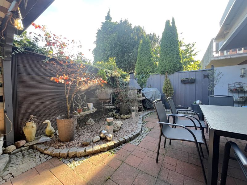 Der kleine Garten bzw. die große Terrasse ist ein Rückzugsort aus dem stressigen Alltag. Denn hier sind Sie schnell mit der Gartenpflege durch und können zum gemütlichen Teil übergehen.