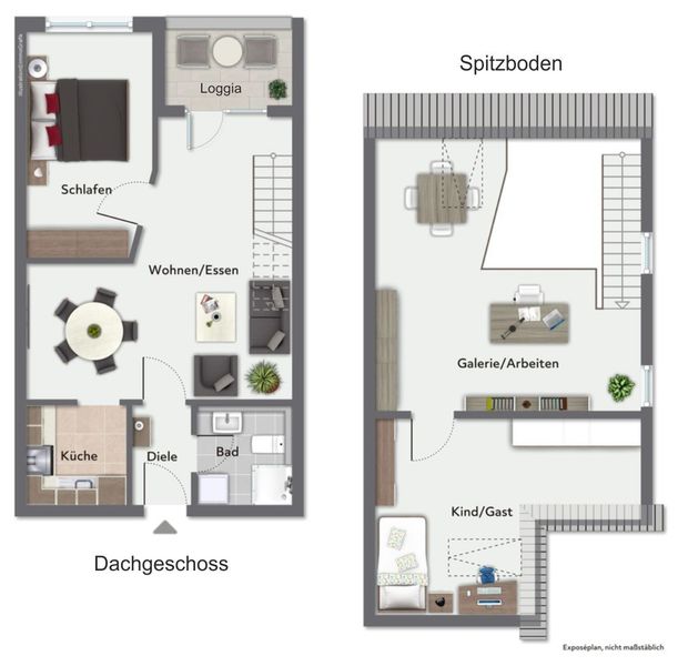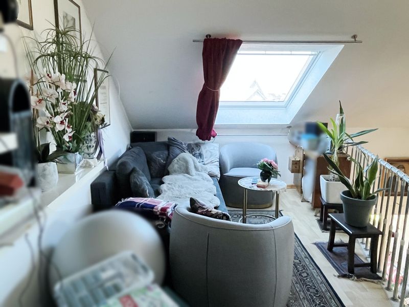 Eine offene Holztreppe verbindet die Wohnbereiche des II. OGs mit der Galerie und dem angrenzenden Arbeits- oder Gästezimmer im Spitzboden. Diese Räume stellen für Sie bei der Wohnungsnutzung ein absolutes Plus dar; beispielsweise als weiteres Schlafzimmer, für Homeoffice, Ihr Hobby oder einfach für schöne Stunden in einer gemütlichen Leseecke.