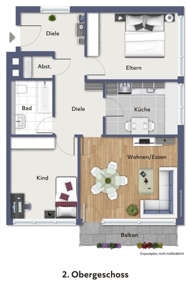 Auf rund 74 m² Wohnfläche erwarten Sie drei gut geschnittene Zimmer, die sich ideal für eine flexible Nutzung eignen. Die Wohnung befindet sich im 2. Obergeschoss eines gepflegten Mehrfamilienhauses aus dem Baujahr 1961 und verfügt über einen sonnigen Balkon, der zusätzlichen Wohnkomfort bietet. Ein praktischer Kellerraum sorgt für weiteren Stauraum.