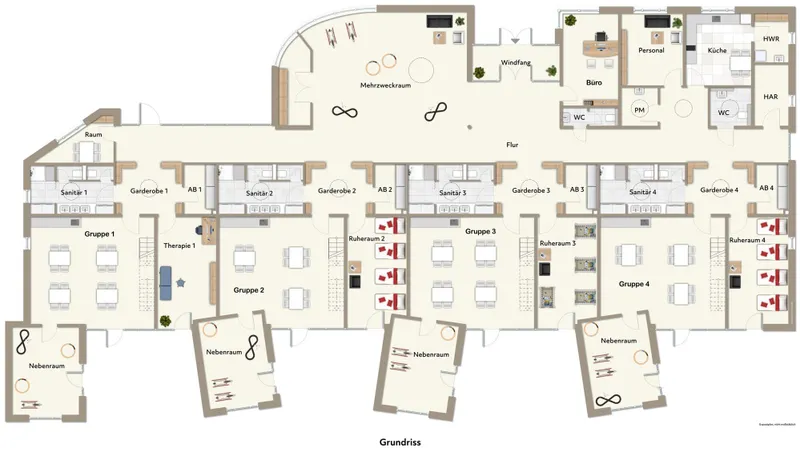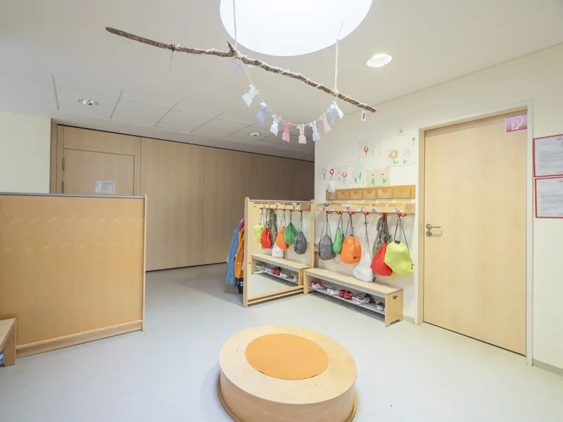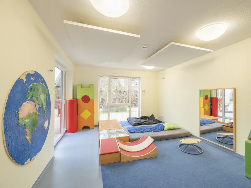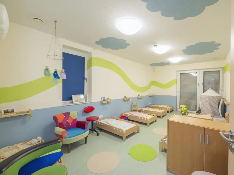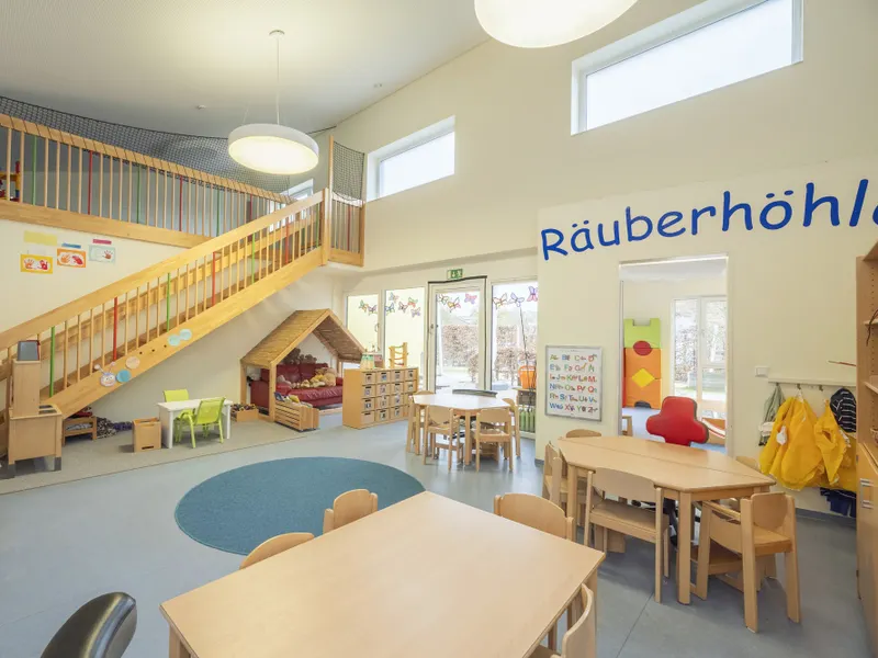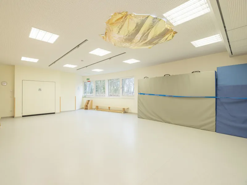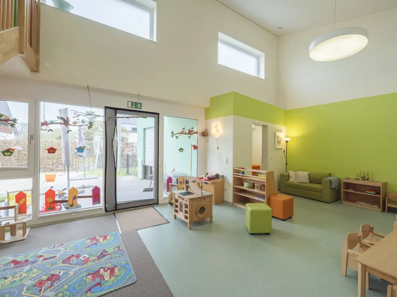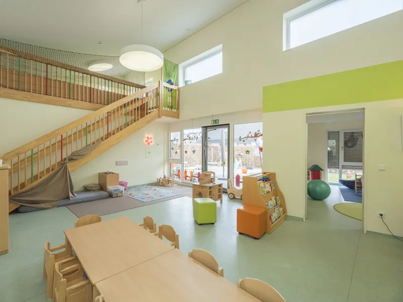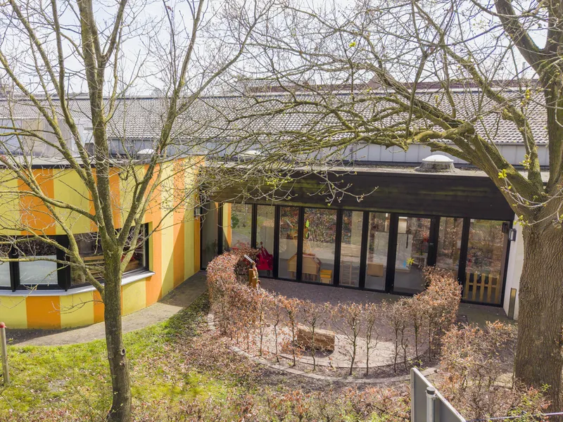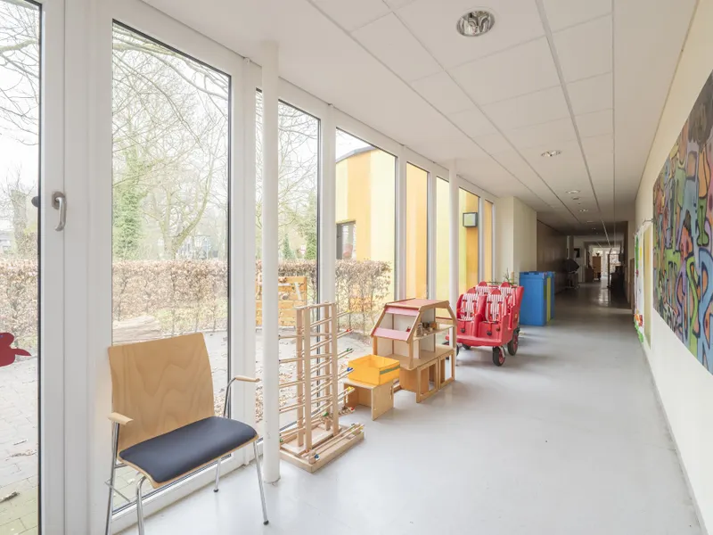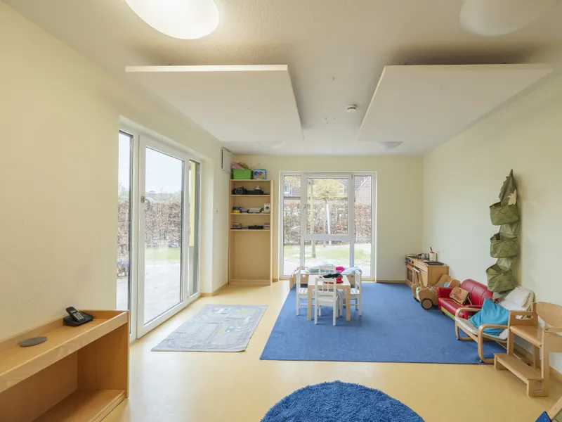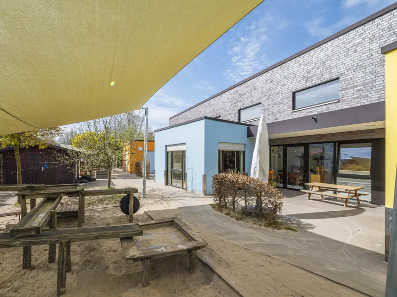 Diese im Jahr 2013 erbaute Kindertagesstätte überzeugt mit ihrer modernen Bauweise und der hochwertigen Ausstattung. Die Immobilie zeichnet sich durch klare Linien und eine funktionale Architektur aus, die sowohl ästhetisch ansprechend als auch praktisch ist. Die Nutzfläche beeindruckt mit ca. 790 m². Die Kindertagesstätte beinhaltet 4 Gruppen mit je einer Teilebene und einen großen gemeinschaftlichen Spielplatz.