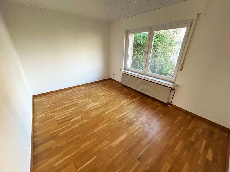 Das Einfamilienhaus bietet auf ca. 120 m² Wohnfläche ausreichend Platz für die gesamte Familie. Schon der einladende Eingangsbereich vermittelt ein Gefühl von Behaglichkeit. Im Erdgeschoss erwartet Sie ein Büro oder Gästezimmer mit stilvollem Echtholzparkett. Zudem finden Sie hier ein praktisches Gäste-WC und eine Küche mit herrlichem Blick in den Garten. Direkt neben der Küche befindet sich das weitläufige Wohnzimmer, welches durch eine Schiebetür Zugang zum privaten Garten gewährt – ein Paradies für Kinder zum Spielen und Toben. Ein Abstellraum mit Waschmaschinenanschluss rundet das Erdgeschoss ab.