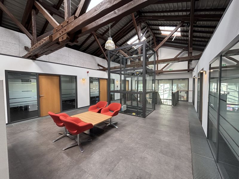 Die angebotene Fläche von ca. 615 m² verteilt sich auf das Erdgeschoss und 1. Obergeschoss. Der Eingang zum Gebäude ist barrierefrei, das 1. Obergeschoss ist mit dem Aufzug bequem erreichbar.
