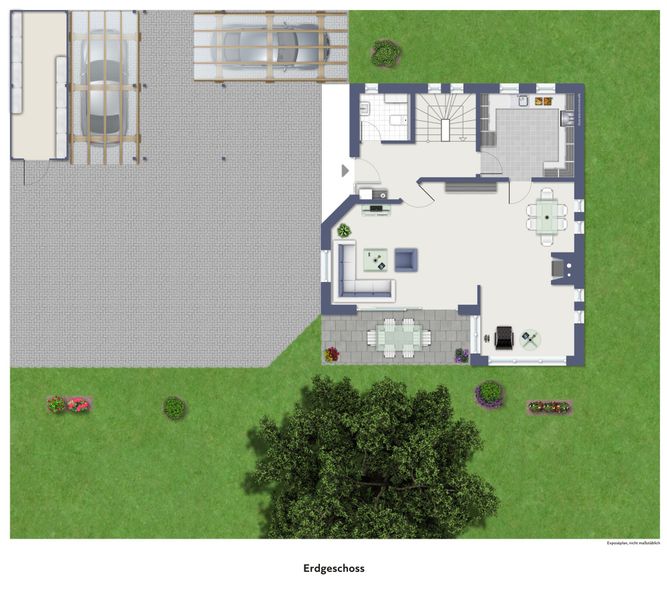 Zudem verfügt das Haus über eine großzügige Doppelgarage, in der zwei Autos bequem Platz finden. Weitere Stellplätze in der Einfahrt bieten genügend Platz, um ein Wohnmobil oder mehrere Fahrzeuge abzustellen. Das Haus ist voll unterkellert, was zusätzlichen Stauraum oder die Möglichkeit für Hobbyräume bietet.