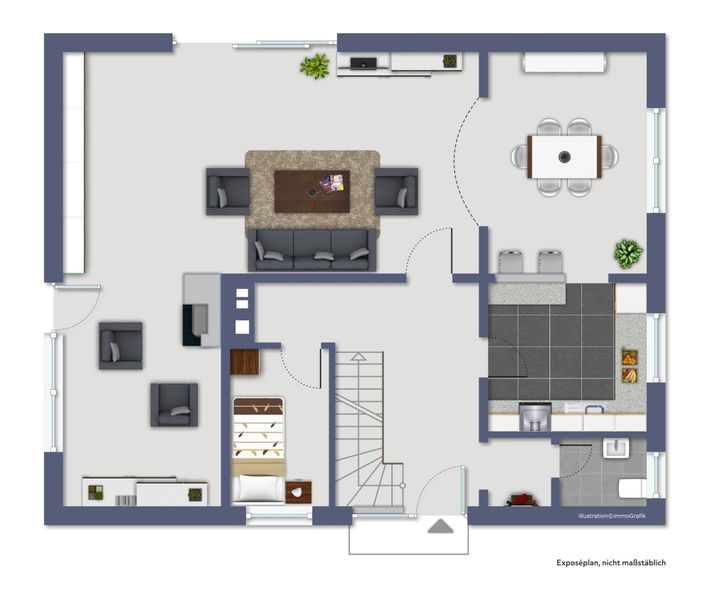 Die Raumgestaltung im Erdgeschoss bietet hervorragendes Potenzial zur Umgestaltung: Verbinden Sie die Küche stilvoll mit dem Esszimmer oder schaffen Sie im Erdgeschoss einen zusätzlichen Raum für Ihr Homeoffice.