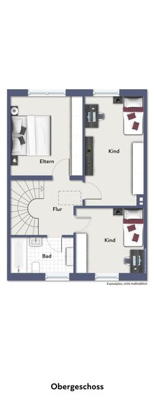 Das Obergeschoss wird der Rückzugsbereich der ganzen Familie. Insgesamt drei Schlafzimmer sowie ein Tageslichtbad mit Duschwanne stehen Ihnen hier zur Verfügung!
