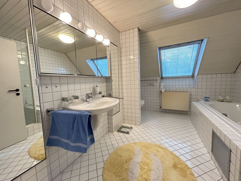 Die Immobilie verfügt über insgesamt sechs Zimmer, darunter im Erdgeschoss ein geräumiger Wohn-Essbereich, ein Kamin- und ein Gästezimmer sowie ein Duschbad. Im Dachgeschoss steht ein Schlafzimmer, zwei Kinderzimmer sowie ein Wannen- und Duschbad zur Verfügung. Der gemütliche Kamin verleiht dem Haus eine warme und einladende Atmosphäre, perfekt für entspannte Abende mit der Familie oder Freunden.