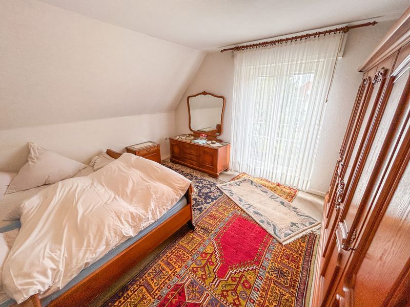 Das Dachgeschoss umfasst drei weitere Zimmer, die sich ideal als Schlafzimmer eignen, eines davon mit Zugang zum Balkon. Ein separates WC ist auf dieser Etage ebenfalls vorhanden.