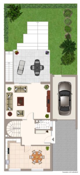 Im Erdgeschoss erwartet Sie ein großzügiges Wohn-/Esszimmer, das durch eine Schiebetür direkt auf die einladende Terrasse führt, ideal zum Entspannen und Genießen sonniger Tage. Die helle Wohnküche, ein praktisches Gäste-WC sowie eine geräumige Diele runden das Raumangebot auf dieser Etage ab.