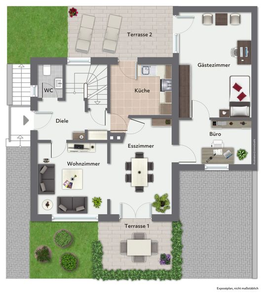 – Büro mit angrenzenden flexibel nutzbaren Raum, z.B. als Gästezimmer