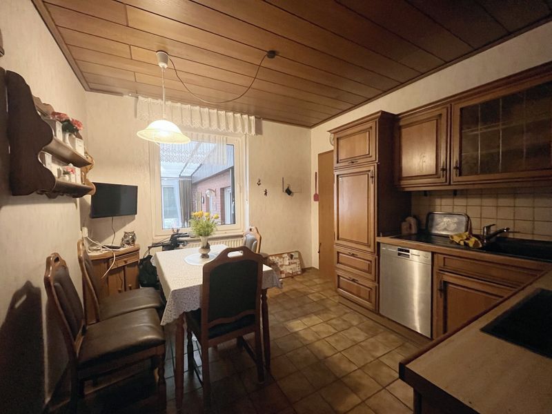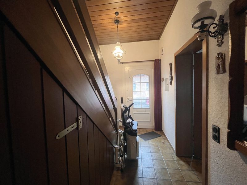 Das Haus stammt aus dem Baujahr 1906 und zeigt sich in einer soliden, traditionellen Bauweise. Es wurde in den Folgejahren kernsaniert und umgebaut. Bereits der Eingangsbereich empfängt mit einem geradlinigen Flur, von dem aus sich die Räume des Erdgeschosses erschließen. Neben einem Gäste-/Kinder- oder Schlafzimmer liegt hier ein großzügig geschnittenes Wohn-/Esszimmer, das durch seine Größe einige Stellmöglichkeiten bietet. Angrenzend ergänzt die Küche das Erdgeschoss als zentraler Familienraum; sie bietet Platz für einen Esstisch. Praktisch abgerundet wird diese Ebene durch einen Abstellraum, der im Alltag wertvolle Ordnung schafft. Über einen Zwischenflur erreicht man im EG ein geräumiges Bad mit hellen Fliesen sowie einen Freisitz in Wintergartenqualität.