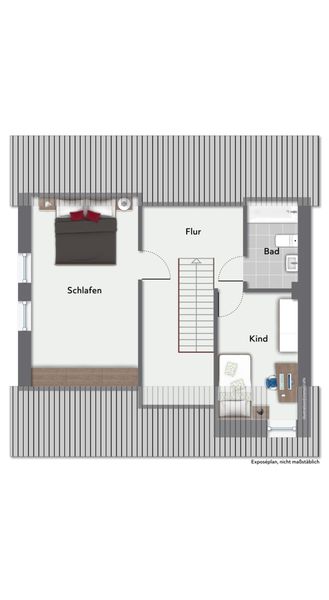 Über die Treppe gelangt man in das Obergeschoss mit zwei weiteren Zimmern, die sich als Kinderzimmer oder Arbeitszimmer nutzen lassen. Ergänzt wird das Raumangebot durch ein kleines Wannenbad/WC sowie einen Flurbereich.