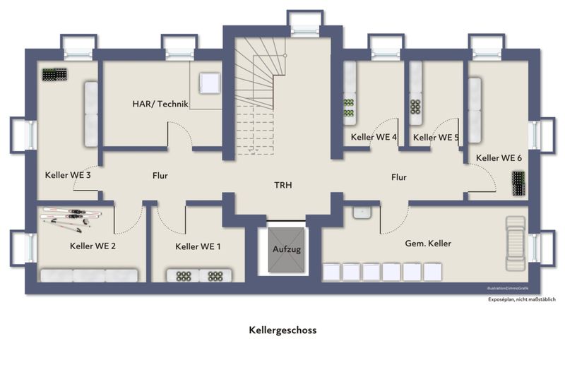 – Baukörper I ist unterkellert und bietet Kellerräume & Waschkeller
