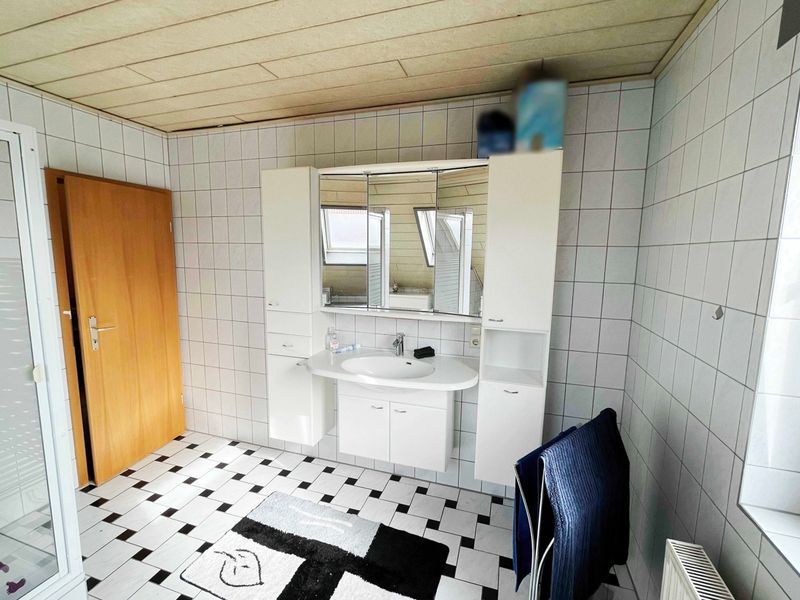 Mit einer Wohnfläche von ca. 125 m² stehen Ihnen insgesamt fünf Zimmer zur Verfügung, darunter drei behagliche Schlafzimmer. Das Erdgeschoss imponiert mit einem großzügigen Wohn-/Essbereich, der mit einem gemütlichen Kaminofen ausgestattet ist, einer einladenden Küche, einer Diele mit praktischer Garderobe, einem Gäste-WC und einem Hauswirtschaftsraum, der z. Z. als Büro genutzt wird. Im Dachgeschoss erwarten Sie zwei geräumige Kinderzimmer, ein modernes Badezimmer mit Wanne, Dusche und WC sowie ein komfortables Elternschlafzimmer.