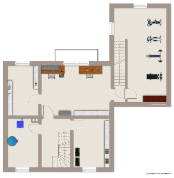 Der Vollkeller mit vier zusätzlichen Räumen, bietet Ihnen vielfältige Nutzungsmöglichkeiten. Die unterkellerte Garage ist direkt mit dem Keller verbunden und ermöglicht eine komfortable Lösung für alle Hobby- und Abstellbedürfnisse.