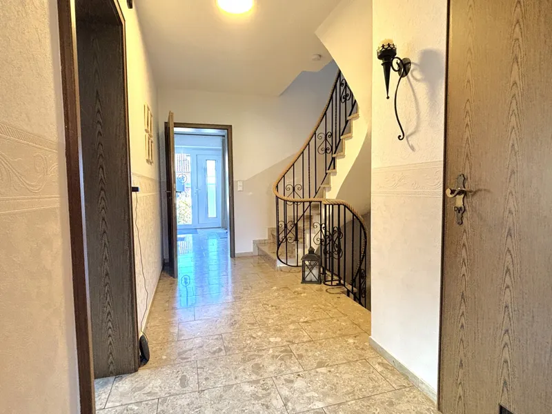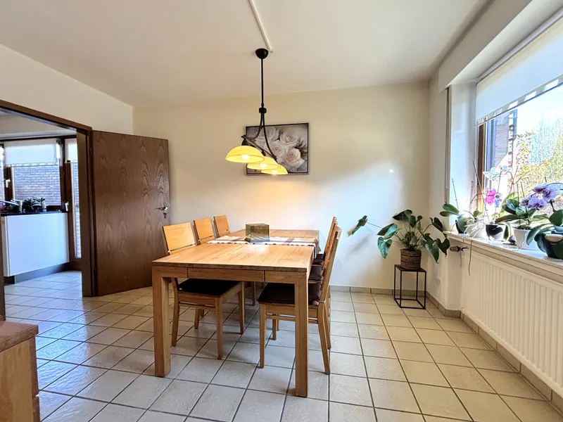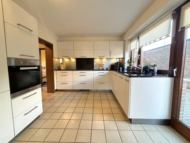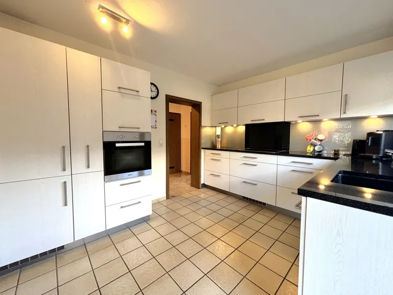 Die Küche überzeugt mit einer hochwertigen Einbauküche, die 2014 erneuert wurde und im Kaufpreis enthalten ist. Ein direkter Zugang ist zum separaten Esszimmer sowie zur Einfahrt gegeben – ein stimmiger Rahmen für gemeinsames Kochen, kurze Wege und einen gut organisierten Familienalltag.