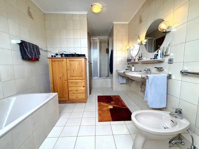 Viel Nutzfläche schafft der Vollkeller mit insgesamt vier Kellerräumen, ideal für Vorräte, Hobby, Werkbank oder Wäscheorganisation. Abgerundet wird das Angebot durch eine Garage, deren Sektionaltor erneuert wurde und sich komfortabel per Code bedienen lässt.
