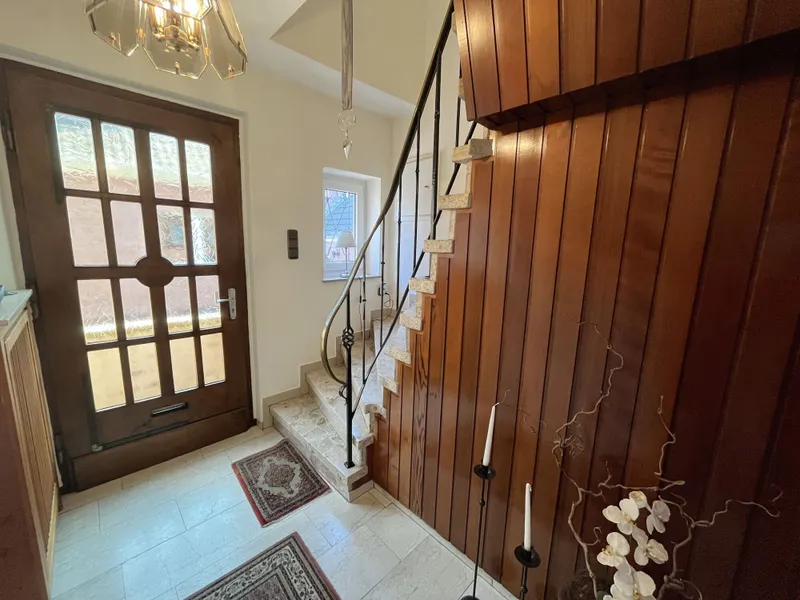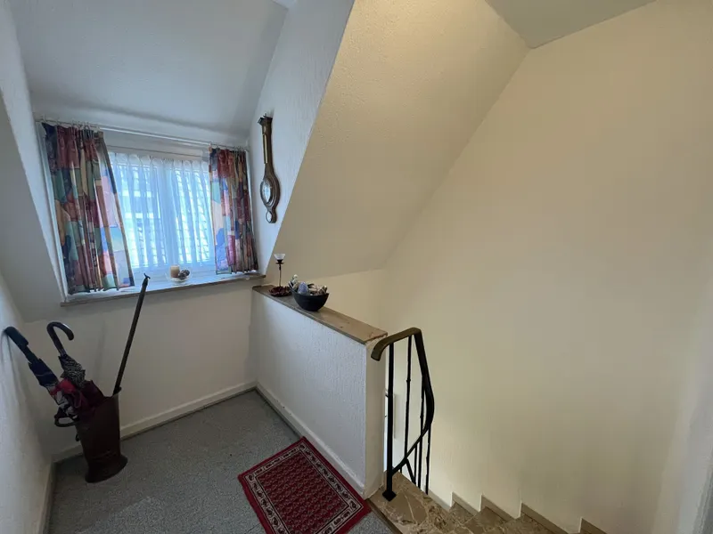 Ein besonderes Plus ist die vollständige Unterkellerung, die zusätzliche Nutz- und Abstellflächen bereithält und damit den Wohnbereich spürbar entlastet. Das weitläufige Grundstück eröffnet vielfältige Gestaltungsmöglichkeiten – ob als Spielbereich für Kinder, Gartenanlage, Terrasse oder Rückzugsort im Grünen.