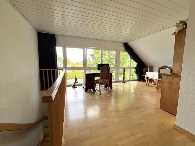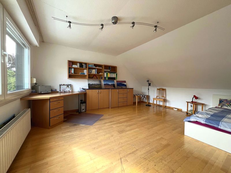 Im Dachgeschoss setzt sich die durchdachte Aufteilung fort. Zwei Kinderzimmer und großzügiges Bad für die Kids sowie ein weiteres Zimmer, das flexibel als Kinderzimmer, Gästezimmer oder Homeoffice genutzt werden kann. Als besonderes architektonisches Element zeigt sich die offene Galerie im Dachgeschoss mit Panoramafensterfront, die dem Haus zusätzliche Großzügigkeit verleiht und sich je nach Bedarf als Leseecke, Spielbereich oder Arbeitszone anbietet. Bei weiterem Platzbedarf, könnte aus diesem Bereich mit etwas Umbauarbeiten, ein weiteres Zimmer geschaffen werden.