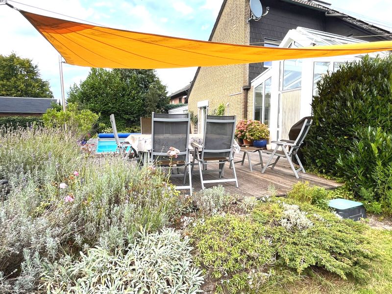 – hochwertige Holzterrasse mit Sonnensegel neu in 2020