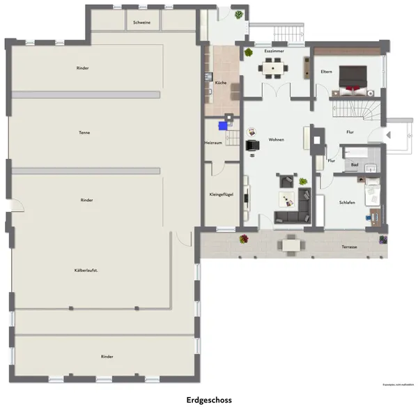 Die massiv errichteten, ehemaligen landwirtschaftlich genutzten Gebäude, bieten Ihnen eine breite Spanne an Nutzungsmöglichkeiten. Denn aufgrund des bestehenden Baurechtes können Sie hier eine individuelle Folgenutzung planen – egal ob großzügiges Wohnen, Pferdehaltung/Tierhaltung oder andere Hobbies mit großem Platzbedarf – hier ist fast alles möglich. Insgesamt ist die Liegenschaft jedoch sanierungsbedürftig!