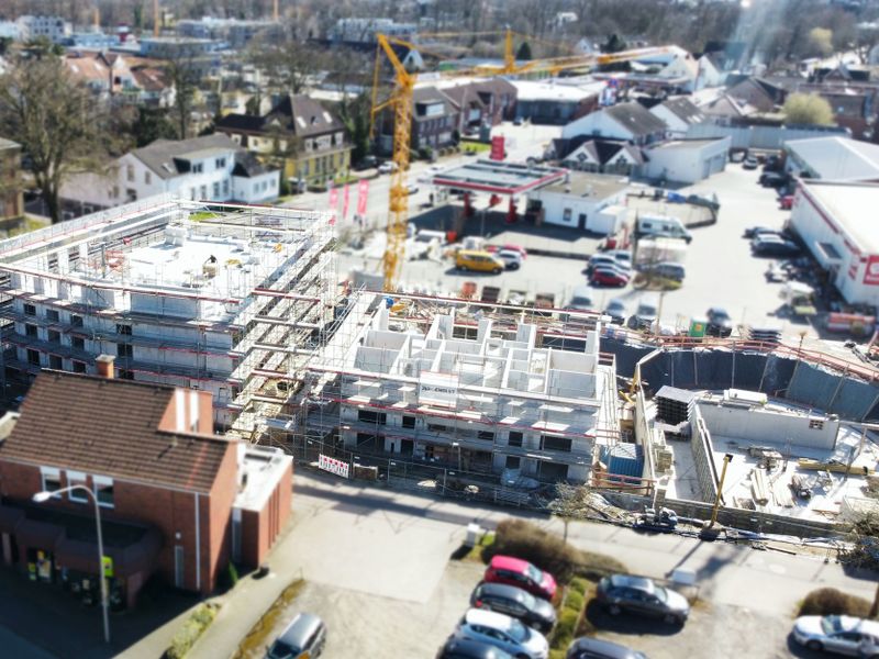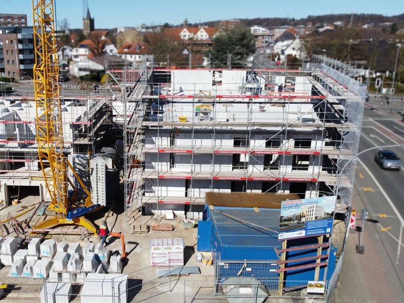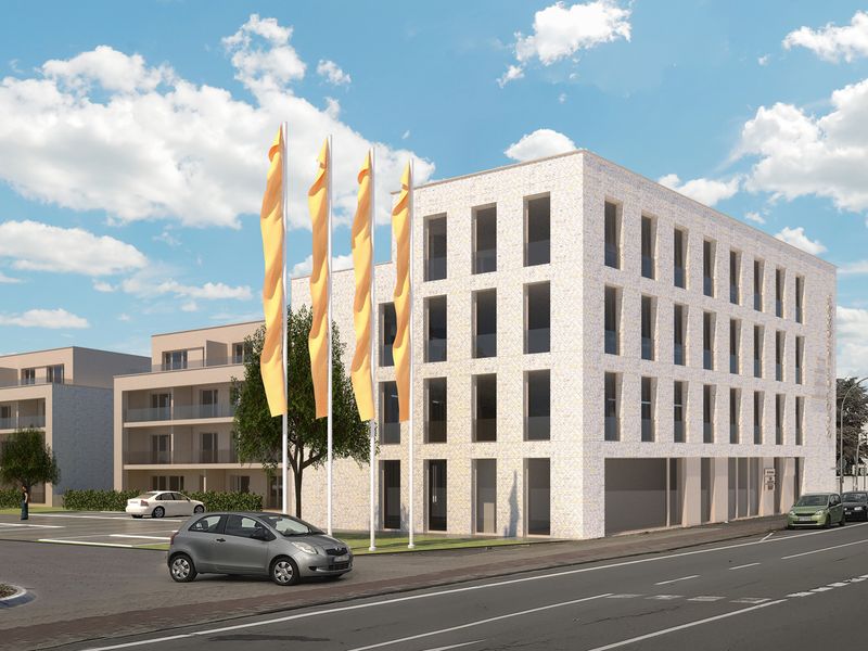 In genau dieser Kulisse entsteht zukünftig dieses ansprechende Wohn-/Geschäftshaus, das nach modernen Standards errichtet wird. Insgesamt stehen Ihnen rund 729 m² flexibel nutzbare und gestaltbare Gewerbefläche zuzüglich Abstellräume im Kellergeschoss zur Verfügung. Diese Fläche verteilt sich auf drei Etagen und lässt sich nach Bedarf auch in drei Einheiten unterteilen. Das Raumkonzept kann nach Absprache innerhalb der Bauphase noch auf Ihre Anforderungen und Bedürfnisse angepasst und individualisiert werden. Bei der Erstellung des Gebäudes wird besonderer Augenmerk auf zukunftsweisende Energieformen, eine moderne Architektur und eine wertige Bauausführung gelegt. Das Gebäude wird nach dem Anforderungen nachhaltigen Standards mit Fußbodenheizung, Luft-/Wärmepumpe und Photovoltaikanlage errichtet. Alle Etagen sind selbstverständlich bequem mittels Personenaufzug erreichbar. Bei dem Stellplatzkonzept wurden PKW- und Fahrradabstellmöglichkeiten berücksichtigt, sodass dem Gewerbebereich insgesamt 21 PKW-Stellplätze und ca. 24 Fahrradabstellplätze zugeordnet sind.