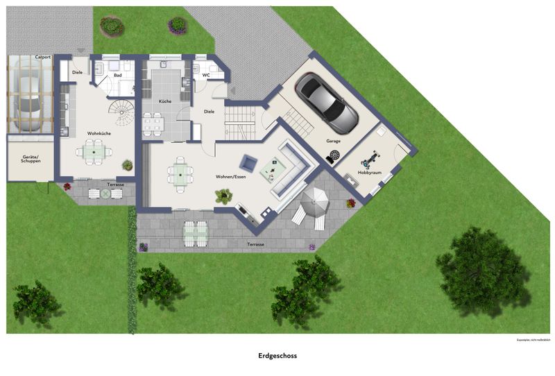 -Terrasse und Gartenteil