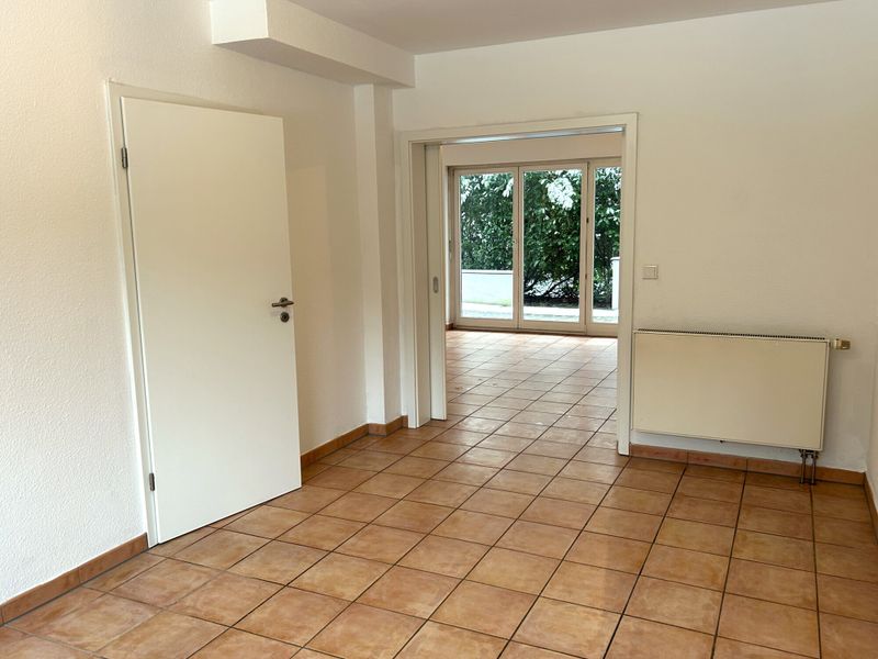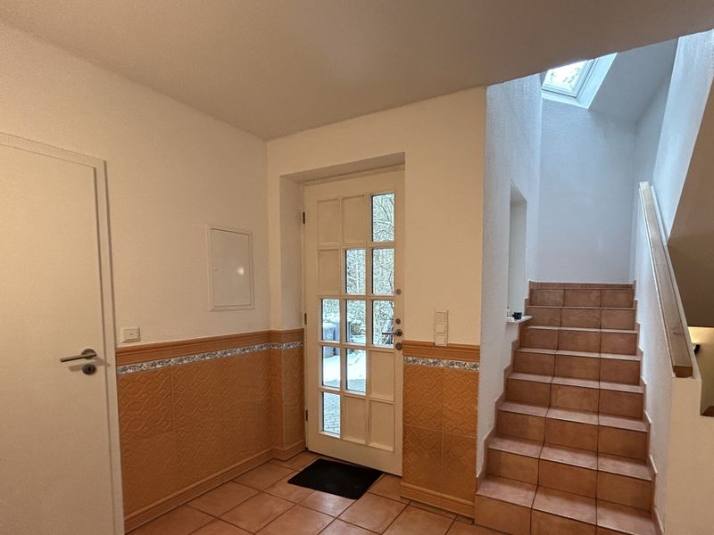 Angrenzend, aber mit einem separaten Eingang versehen, befindet sich die kleine Wohneinheit mit eigener Hausnummer. Diese Einheit bietet kompakten Wohnraum auf ca. 59 m² Wohnfläche, verteilt auf Erd- und Dachgeschoss. Eine eigene Terrasse und ein eigener Gartenteil machen diese Einheit Besonders. Der zusätzliche Komfort wird durch ein Carport sowie einen überdachten Vorraum abgerundet. Aktuell ist diese Wohneinheit vermietet.