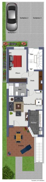 – insgesamt 4 Stellplätze (3 Freiplätze u. 1 Garage)