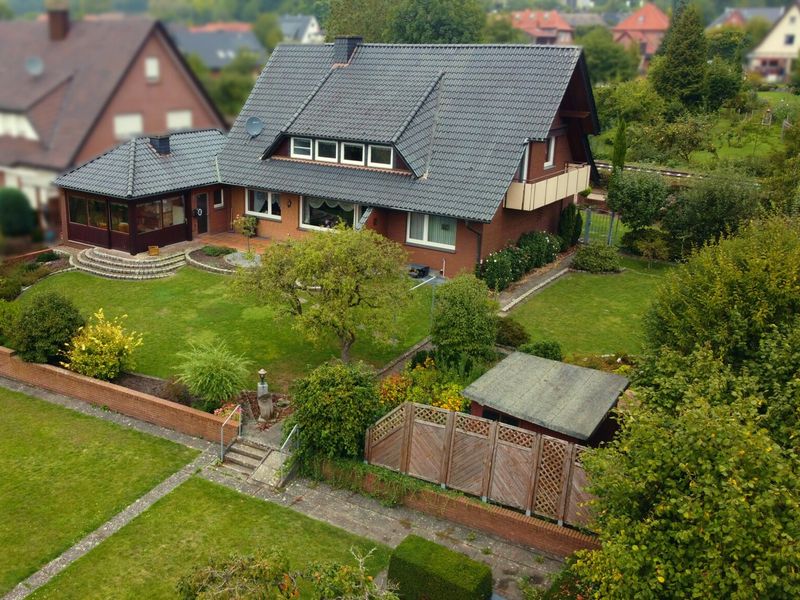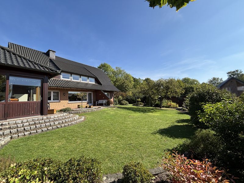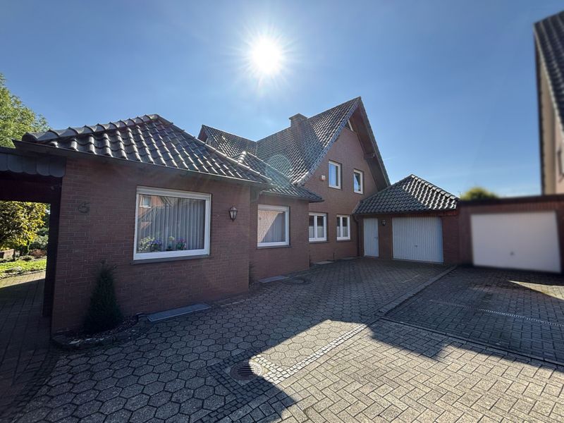 Die Außenanlagen dieses Hauses sind ebenso beeindruckend: Zwei Garagen bieten komfortablen und sicheren Platz für Ihre Fahrzeuge. Der großzügige Gartenbereich lädt zum Verweilen und Gestalten ein und eröffnet Ihnen zahlreiche Möglichkeiten zur individuellen Nutzung. Besonders hervorzuheben ist die gemütliche, überdachte Terrasse mit Kamin – der perfekte Ort für entspannte Stunden im Freien, ganz gleich bei welchem Wetter.