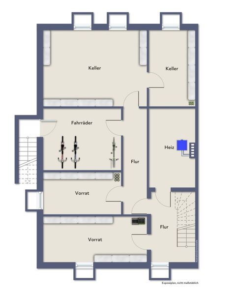 Das vollständig unterkellerte Gebäude bietet zusätzlichen Stauraum und vielseitige Nutzflächen für die Mieter.