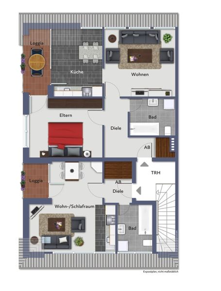 Die drei gut geschnittenen Wohneinheiten, wovon zwei Einheiten vermietet sind, verfügen insgesamt über ca. 185 m² Wohnfläche. Jede Wohneinheit verfügt über eine eigene Loggia oder eine Terrasse, die für zusätzliche Lebensqualität sorgen.