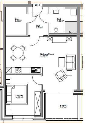 – offener Wohn-/ Koch- und Essbereich mit Zugang zum Balkon