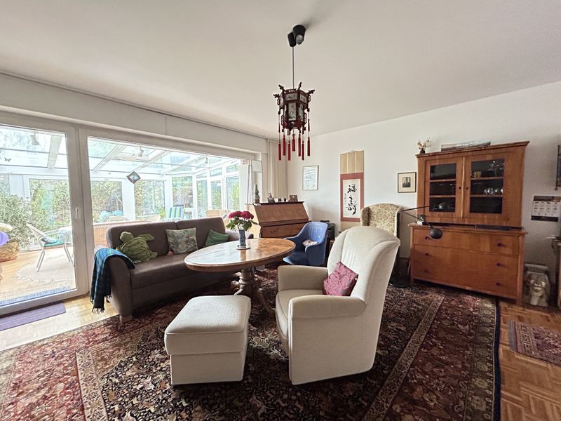 Ein besonderes Highlight ist der im Jahr 1999 errichtete Wintergarten mit einer Fläche von ca. 20 m², der Ihnen auch an regnerischen oder kalten Tagen das Gefühl gibt draußen zu sein. Der Vollkeller eröffnet zudem vielfältige Möglichkeiten für Hobbys oder Stauraum.