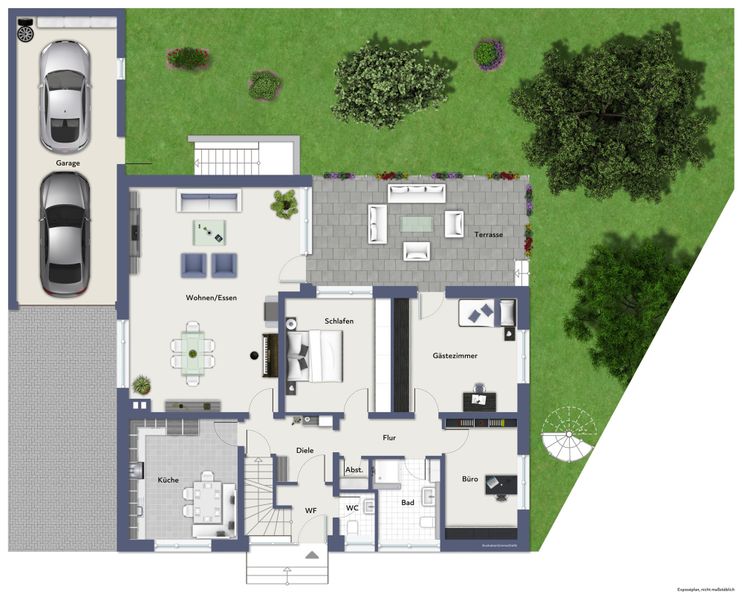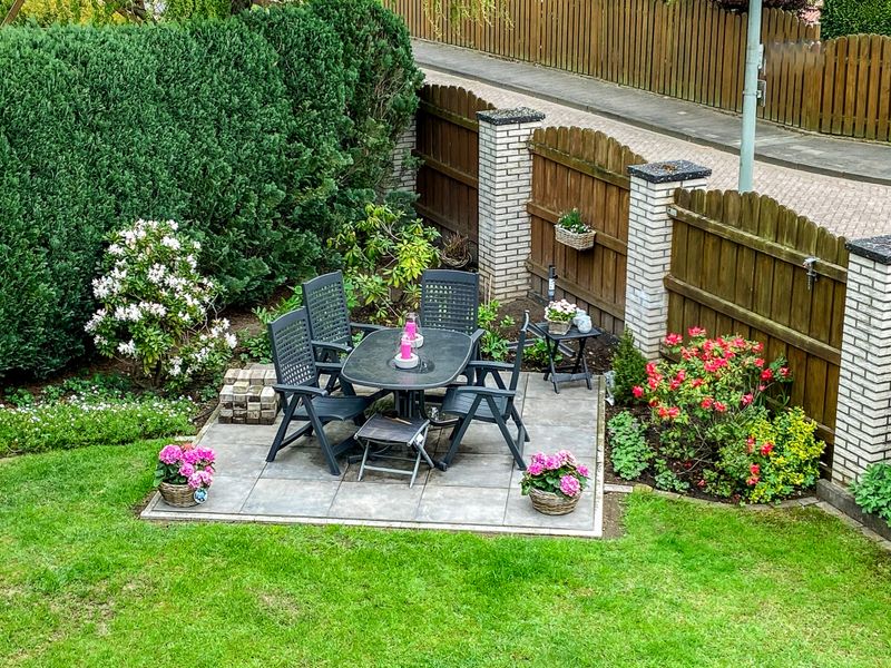 Das Grundstück verfügt über eine Fläche von etwa 727 m² und zeichnet sich durch einen gepflegten Garten aus. Ob Sie Pflanzen lieben, mit Ihren Kindern spielen oder einfach nur die Natur genießen möchten, dieser Garten ist der perfekte Ort für Freizeit und Erholung. Die überdachte Terrasse im Erdgeschoss schafft eine einladende Atmosphäre für gesellige Abende mit Freunden oder ruhige Stunden im Schatten. Ein zusätzlicher Freisitz lässt Sie die späte Abendsonne im Garten genießen.