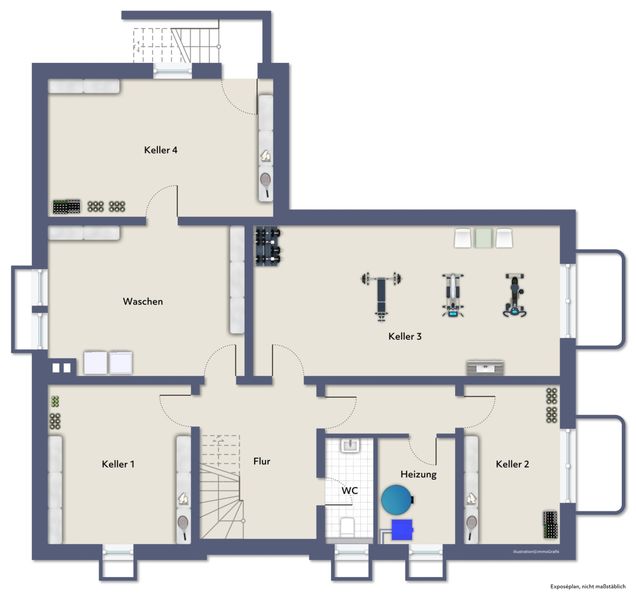 Zudem verfügt das Haus über einen Vollkeller, der zusätzlichen Platz für Stau- und Lagerfläche oder das Hobby bietet. Partykeller, Waschkeller und WC mit Dusche sind vorhanden. Der Keller ist auch über eine Außentreppe vom Garten zugänglich.
