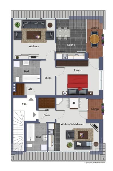 Die drei gut geschnittenen Wohneinheiten, die alle vermietet sind, verfügen insgesamt über ca. 185 m² Wohnfläche. Jede Wohneinheit verfügt über eine eigene Loggia oder eine Terrasse, die für zusätzliche Lebensqualität sorgen.