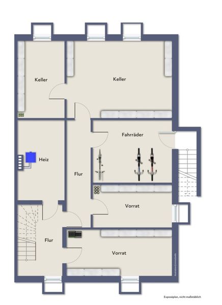 Das vollständig unterkellerte Gebäude bietet zusätzlichen Stauraum und vielseitige Nutzflächen für die Mieter.