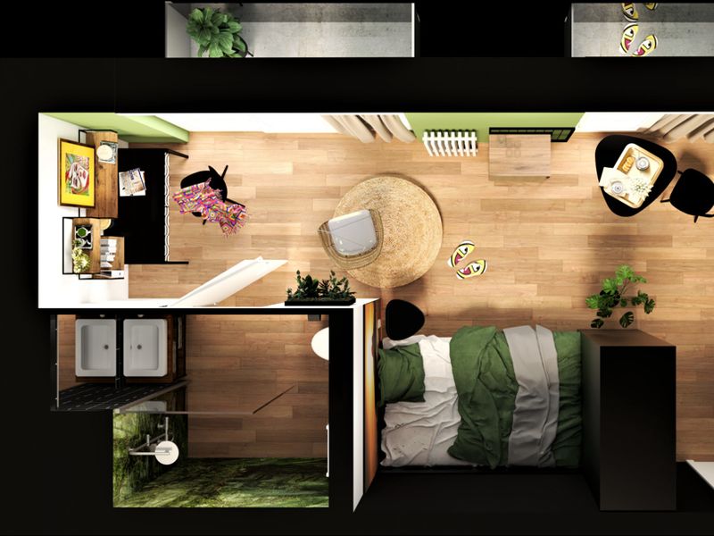 – Community Areas wie bspw. Lounge, Fitnessraum, Eventküche, Lernraum, Lobby